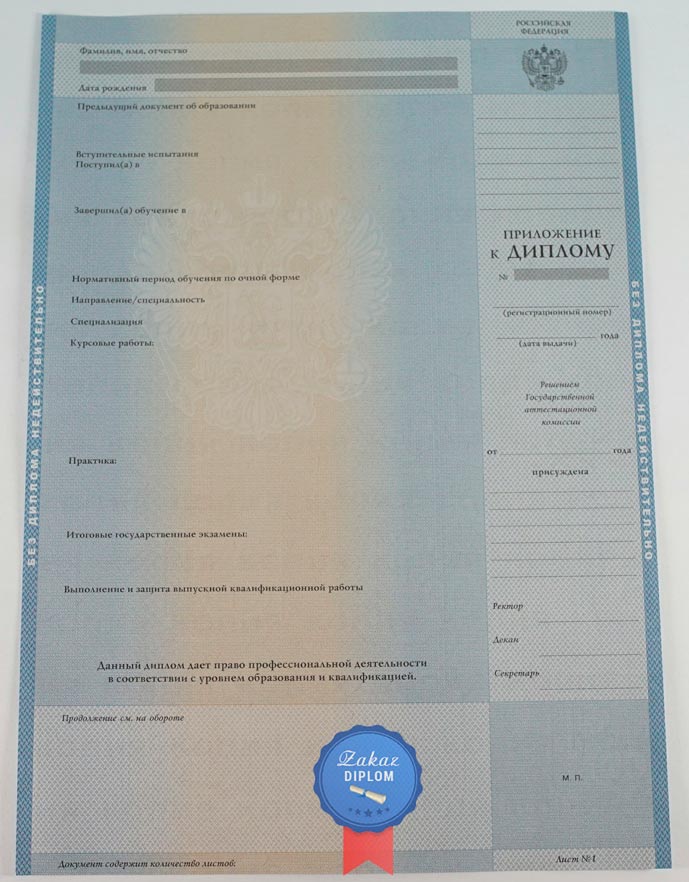 - Диплом, изготовленный на настоящем бланке Гознак;